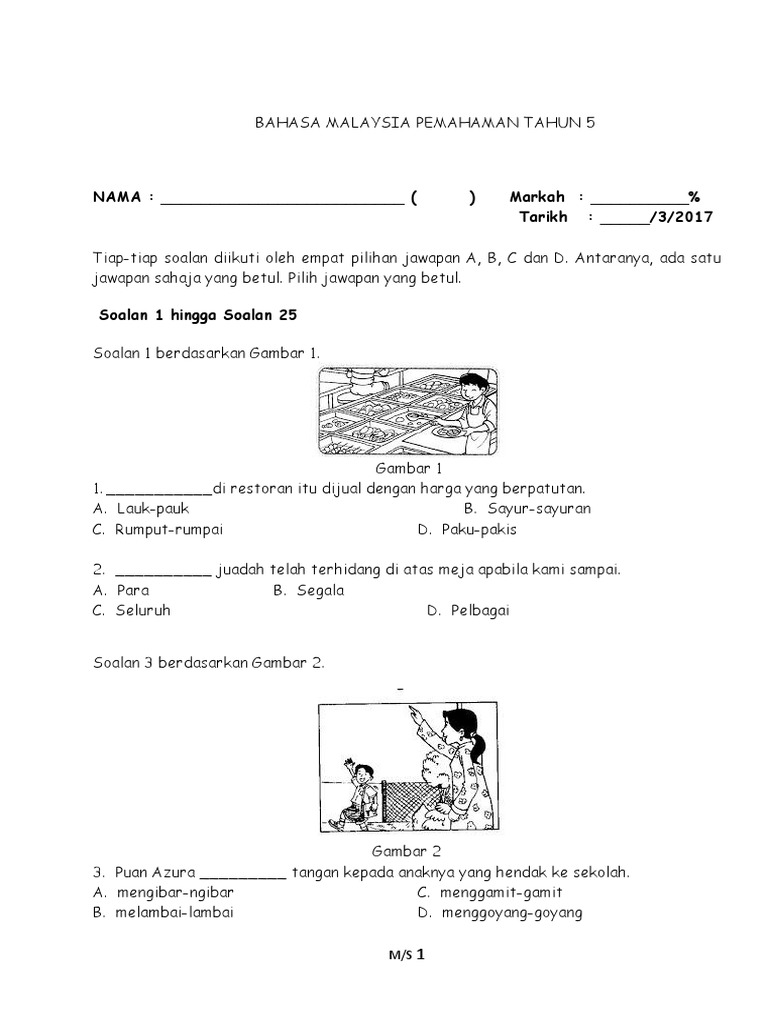 Soalan Bahasa Melayu Tahun 5 Ujian 1 Bulan Mac 2017 Pdf